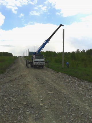Организация подрядчик ООО "МедГиг" осуществляет установку столбов для подключения внутренних сетей электроснабжения.